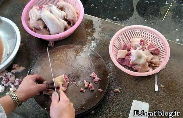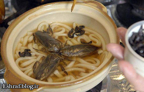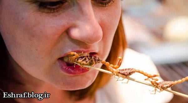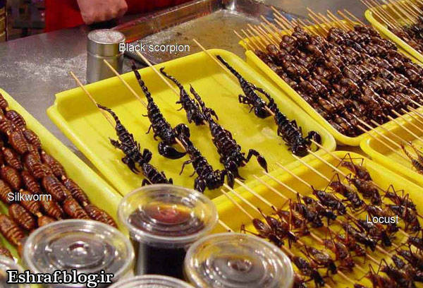 اغلب کشورهای جنوب شرق آسیا به دلیل محدودیت های منابع غذایی و تراکم جمعیتی زیاد در مناطق جغرافیایی کم وسعت ، از کوچکترین منابع طبیعی دارای پروتئین استفاده می نمایند . از آن جمله کشورهایی مانند ژاپن ، کره ، تایلند و در راس آنها چین را می توان نام برد که با خوردن برخی حیوانات مانند سگ و گربه و حشراتی مانند کرم و سوسک و عقرب تعجب همگان را برانگیخته اند . البته خوردن برخی حیوانات و حشرات در سایر کشورهای جهان نیز رواج دارد ولی چینی ها از نظر دایره وسیع اینگونه خوردنیها و روش طبخ آن ، گوی سبقت را از دیگران ربوده اند و با این کار صحنه های زیبایی را برای خود ، تهوع آور برای ما و بدیعی را برای همگان خلق کرده اند .